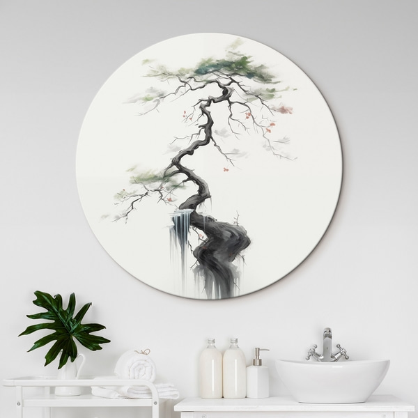 Ronde schilderijen Abstractie. Boom en zon. Japans minimalisme