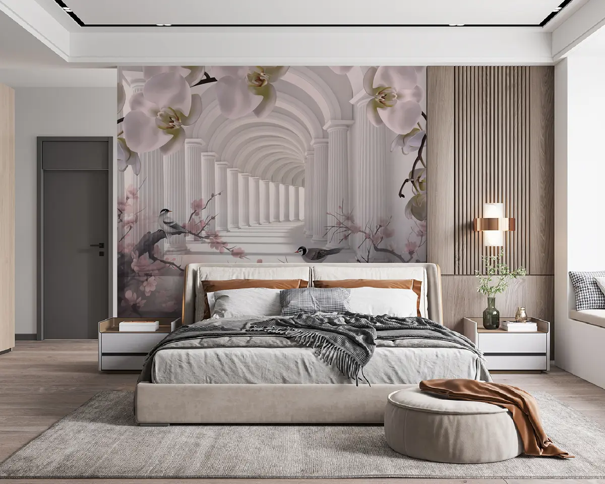 Fotobehang Mooie tunnel met vogels en orchideeën N° u94513