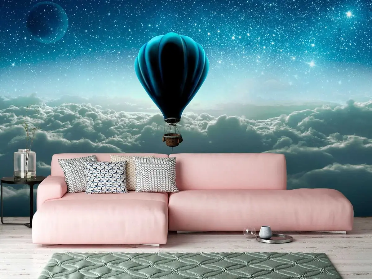 Fotobehang Hete luchtballon op de achtergrond van de nachtelijke hemel N° u70538