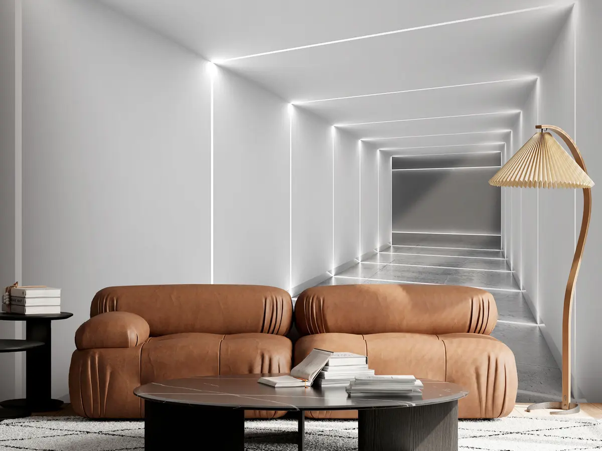 Fotobehang Witte tunnel met gepolijste betonnen vloer N° u95075