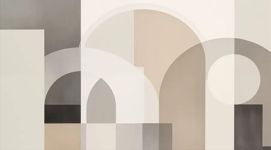 Muurschildering abstracte geometrie in grijze en beige tinten