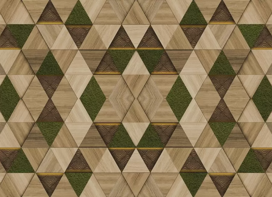 Muurschildering Geometrisch houten ornament met mos