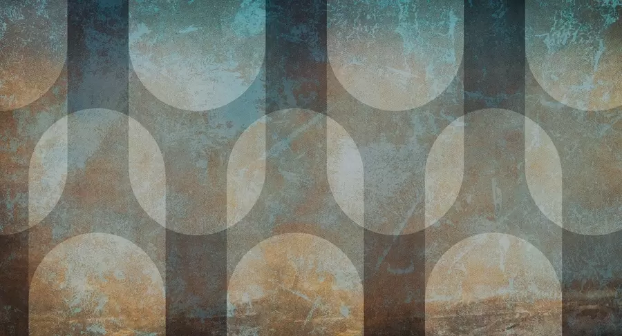 Muurschildering Abstracte retro-stijl in blauw