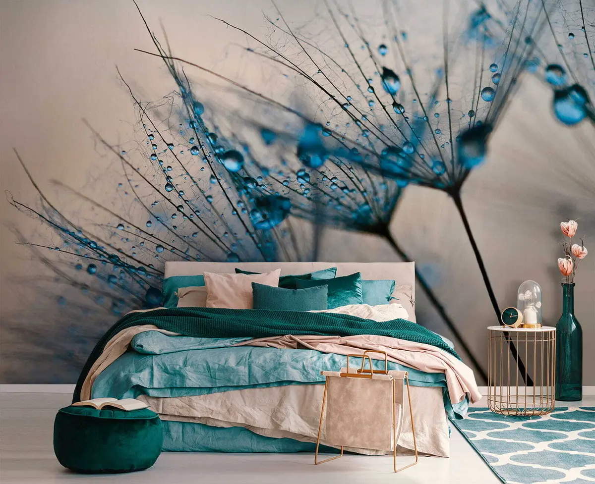 Fotobehang Paardebloemen met druppels water N° u57557