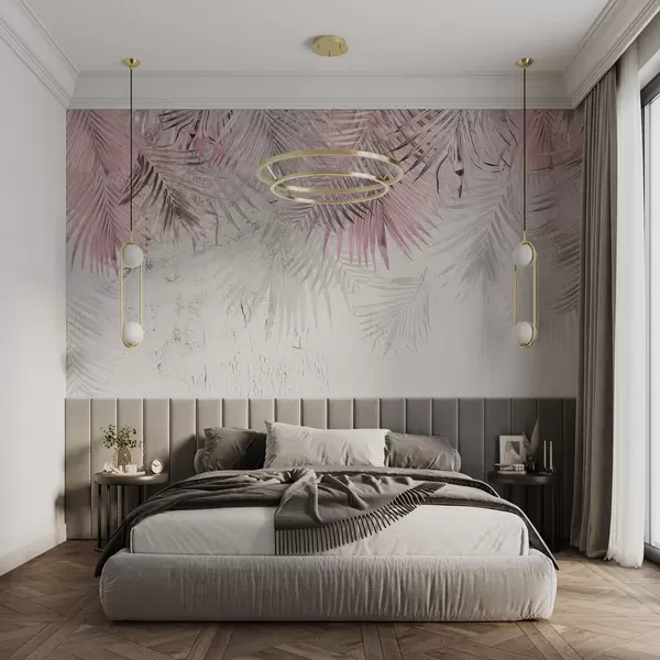 Fotobehang Roze tropische bladeren in grungestijl N° u93843v2