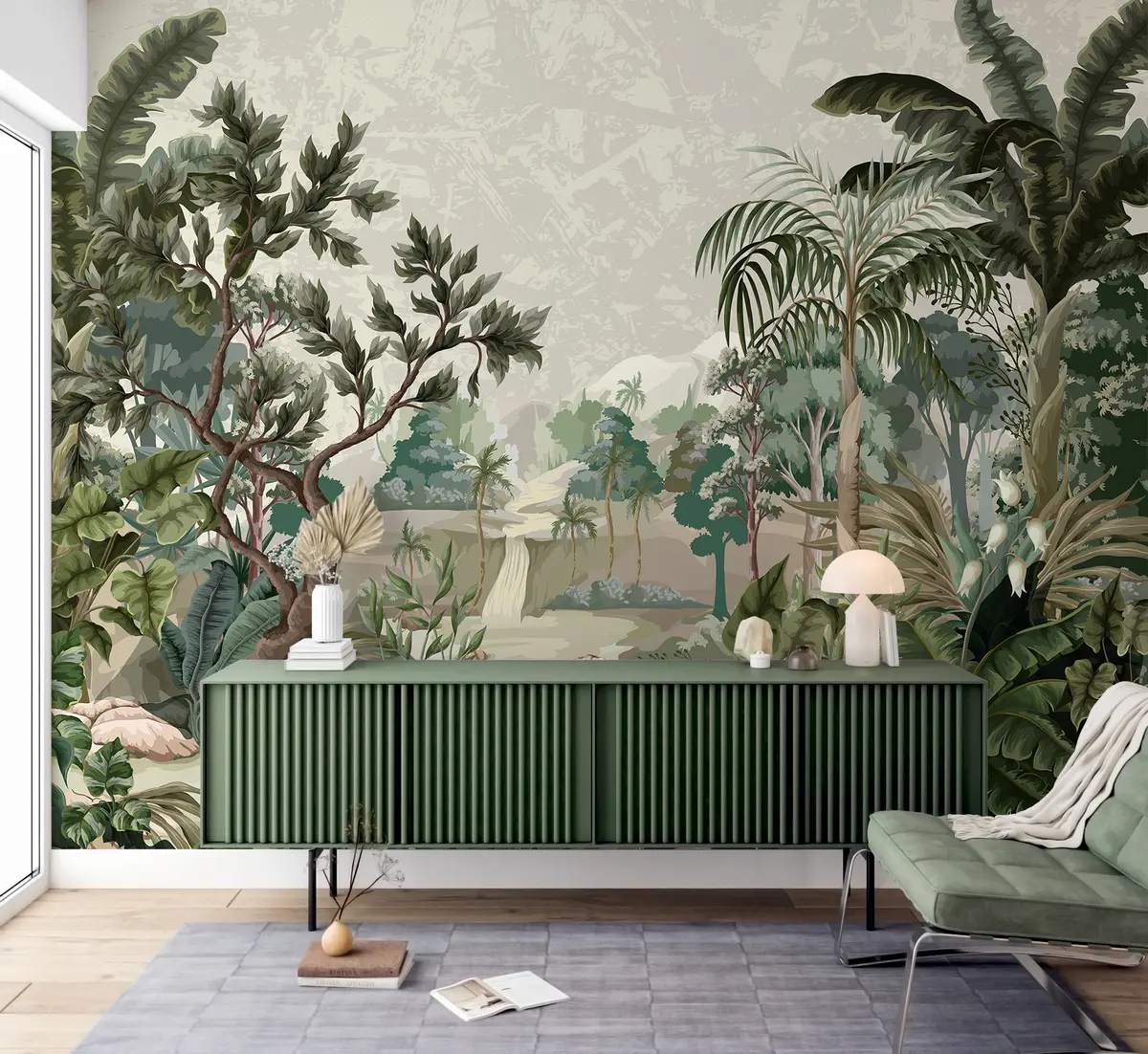 Fotobehang Jungle met rivier en palmbomen N° u95915