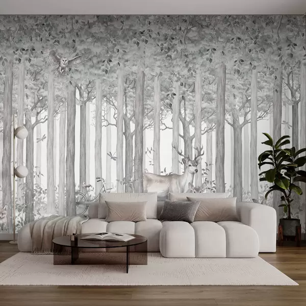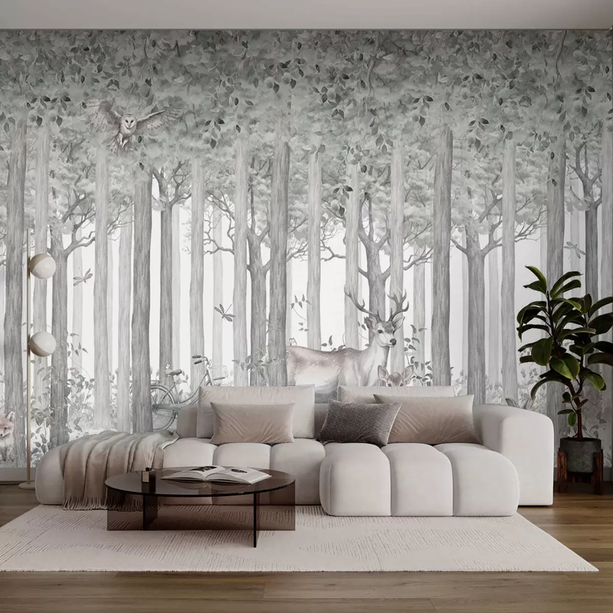 Fotobehang Bosdieren hert en uil in grijs N° u97629v1