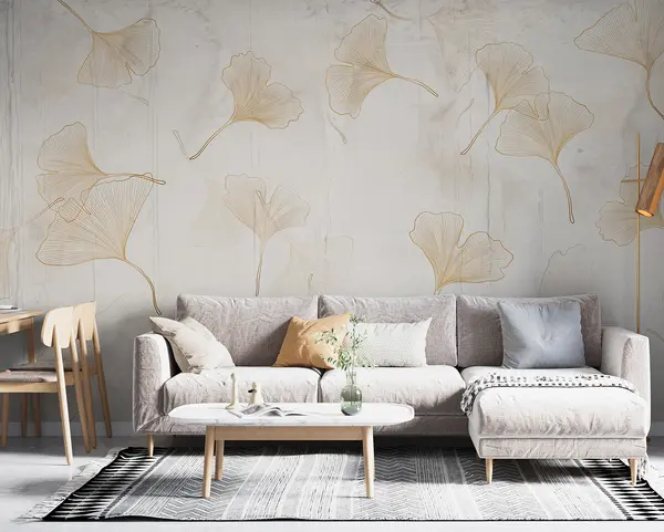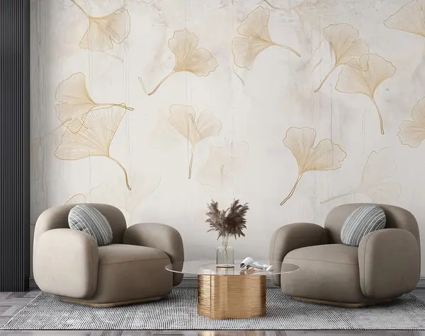 Fotobehang Ginkobladeren in beige tinten N° u96467