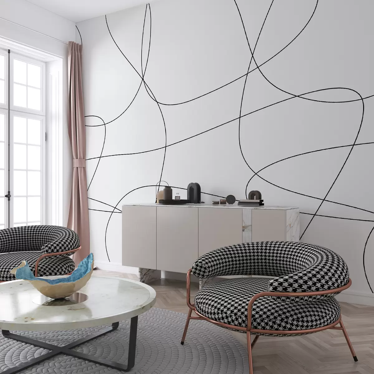 Fotobehang Stijlvol behang met lijnen in boho-stijl N° u98563