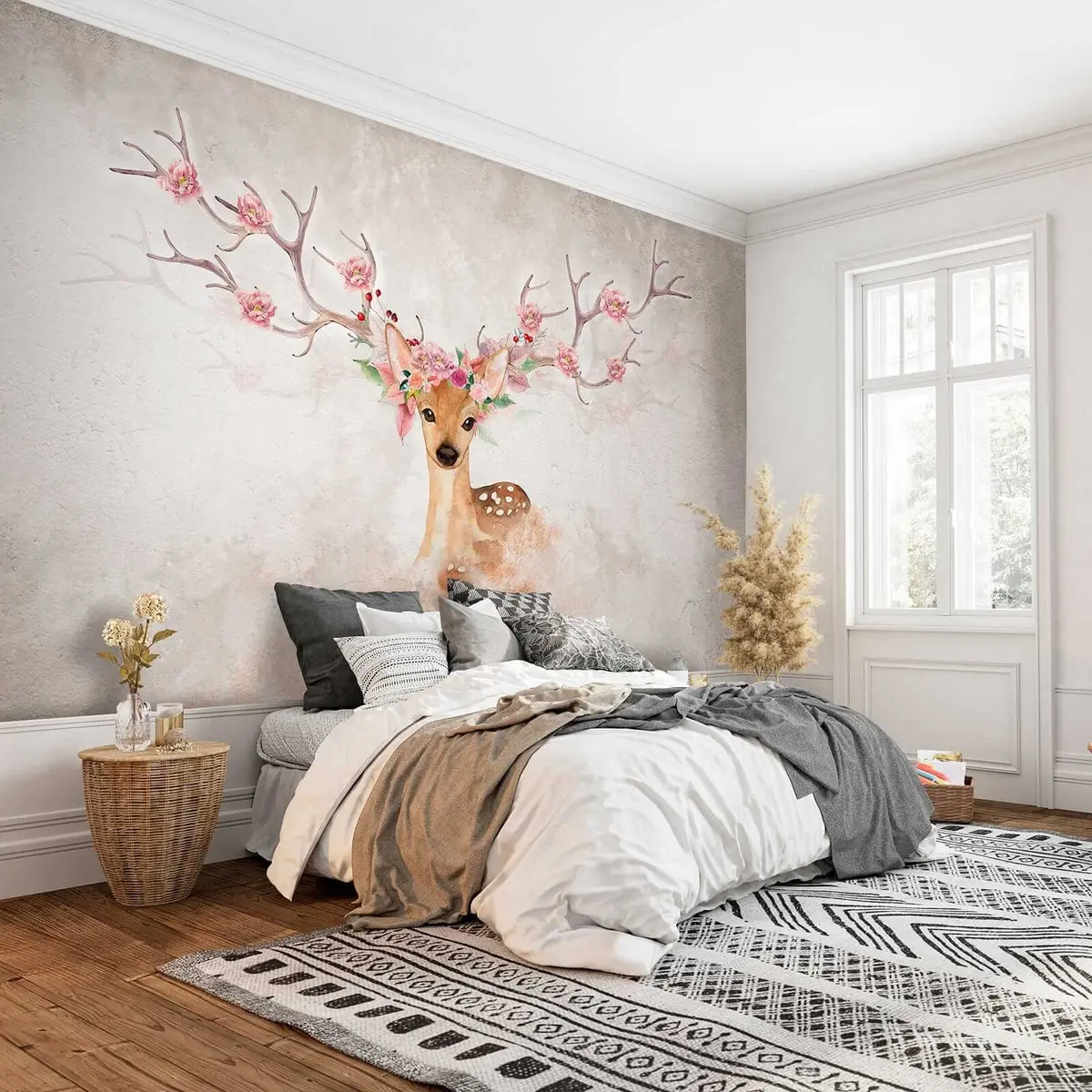 Fotobehang Herten met bloemen op het gewei N° u04671