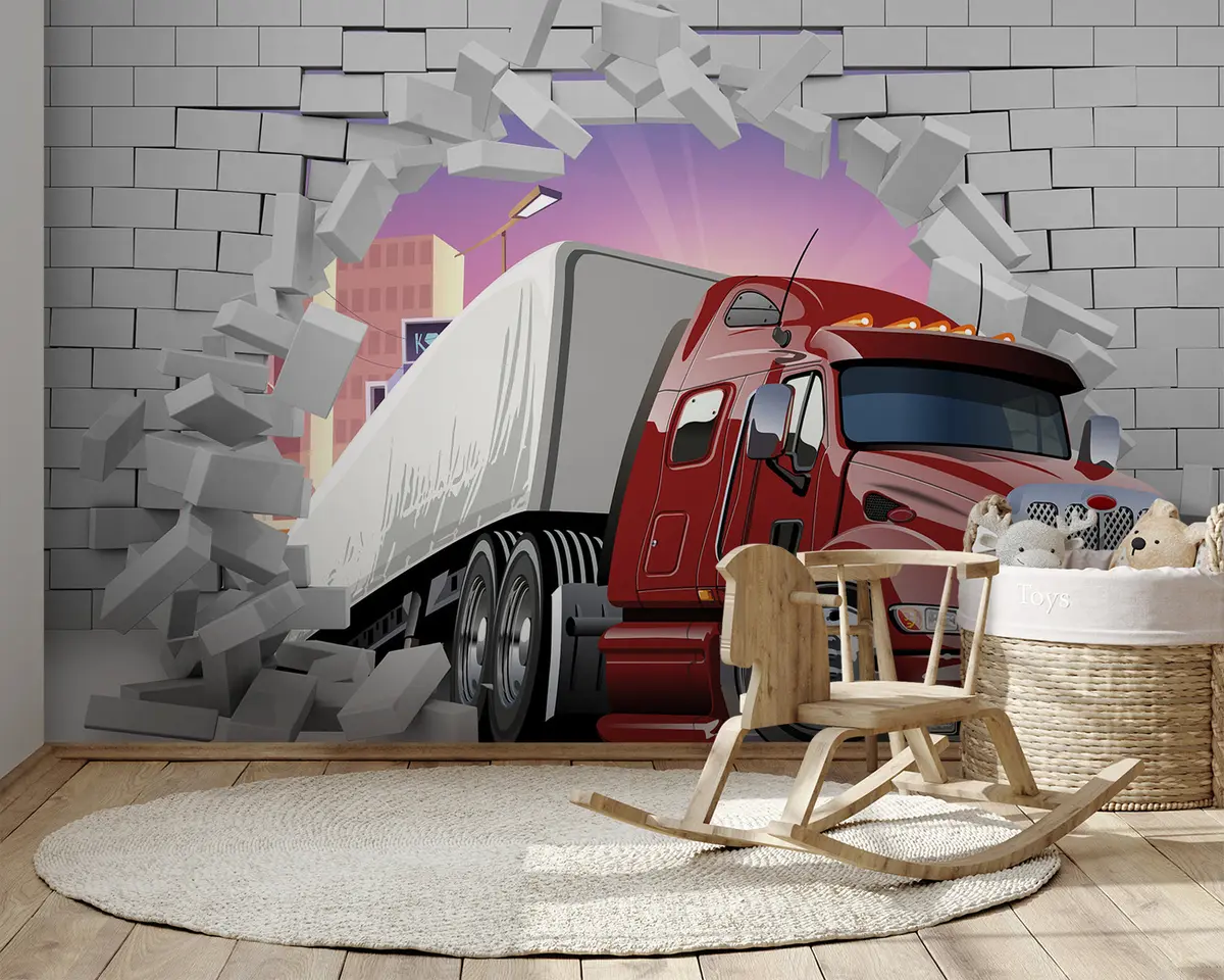 Fotobehang Vrachtwagen tegen de achtergrond van een bakstenen muur N° u93974