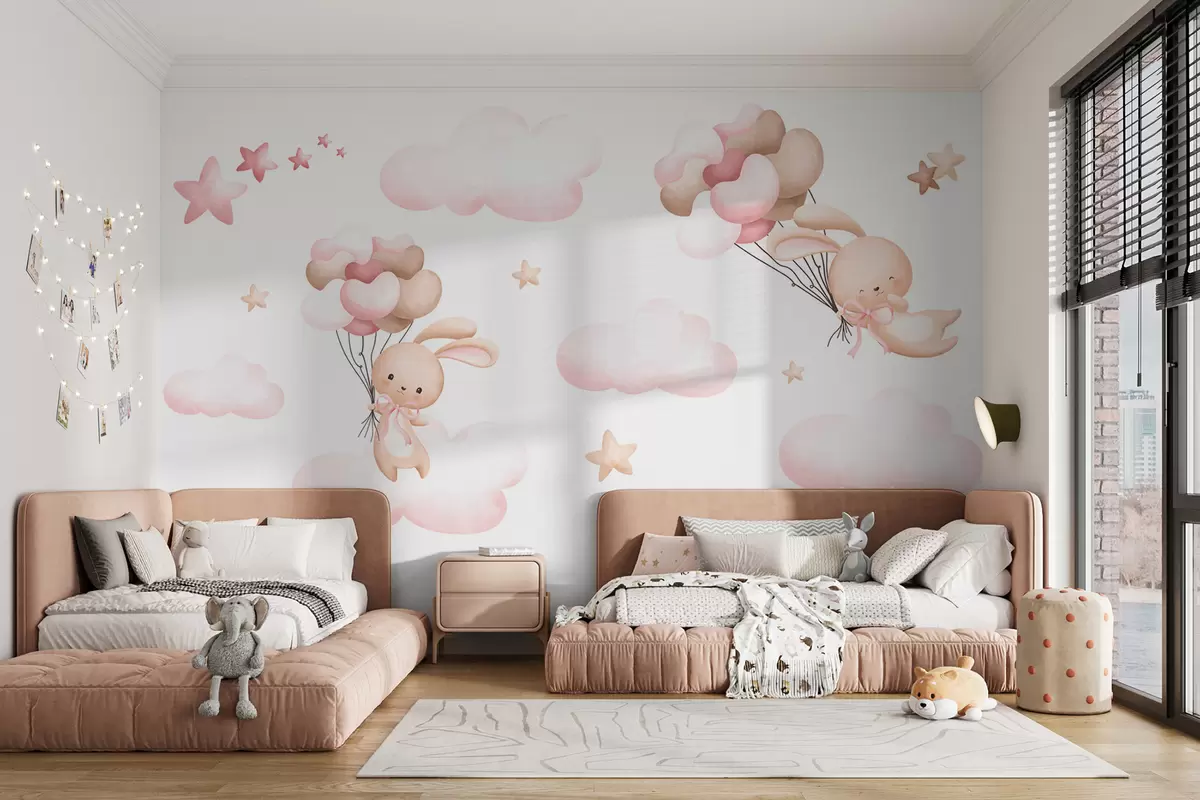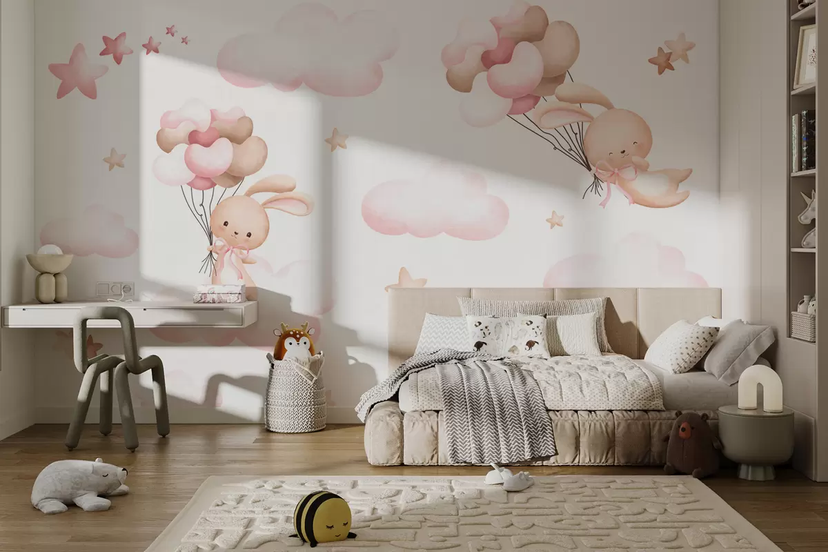 Fotobehang Schattig konijn en ballonnen N° u95399