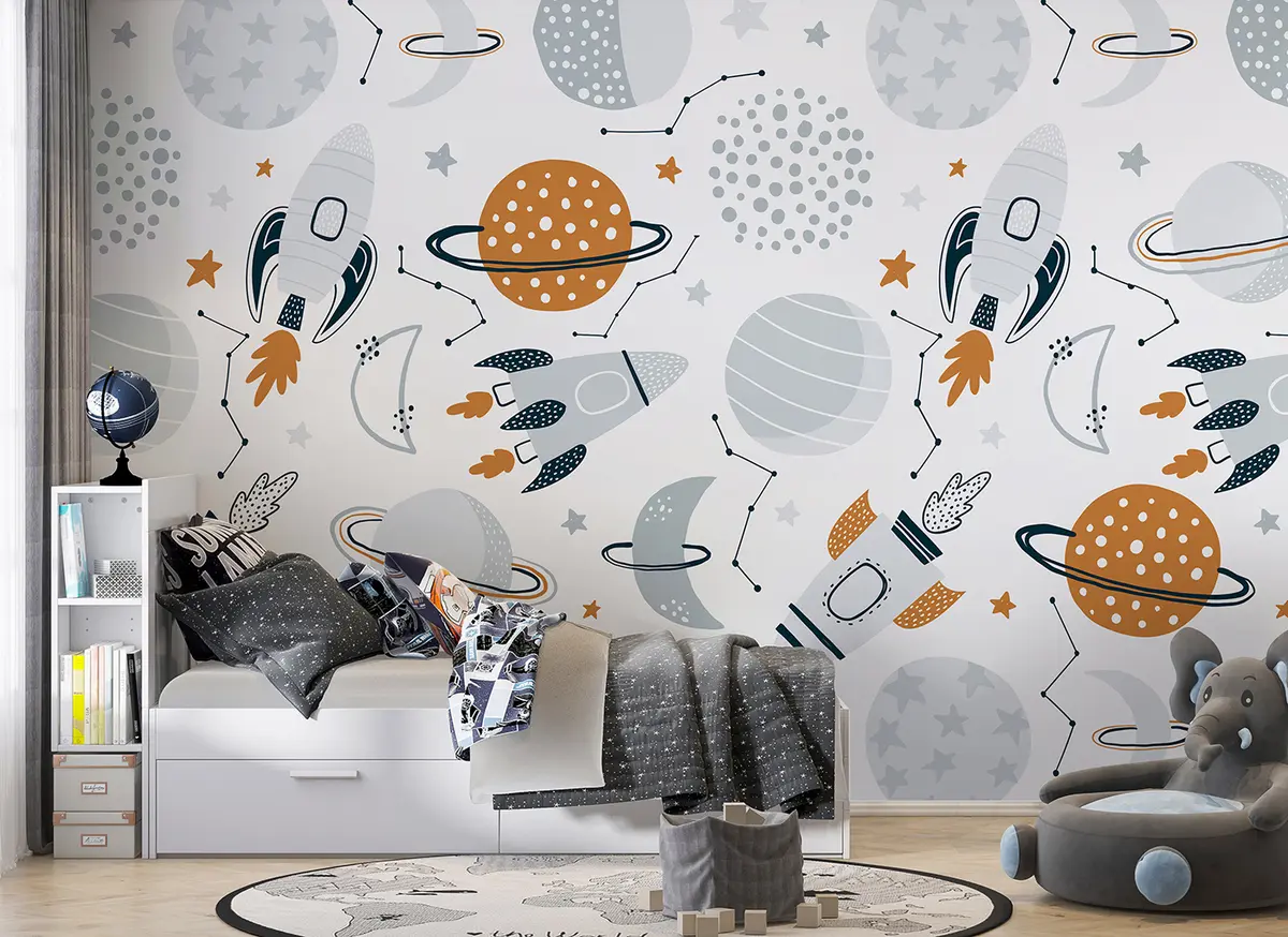 Fotobehang Ruimte met planeten, sterren, sterrenbeelden, raketten, ruimteschepen N° u96582