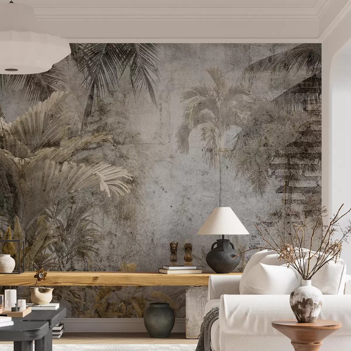 Fotobehang Tropisch bos op een betonnen muur N° u71248