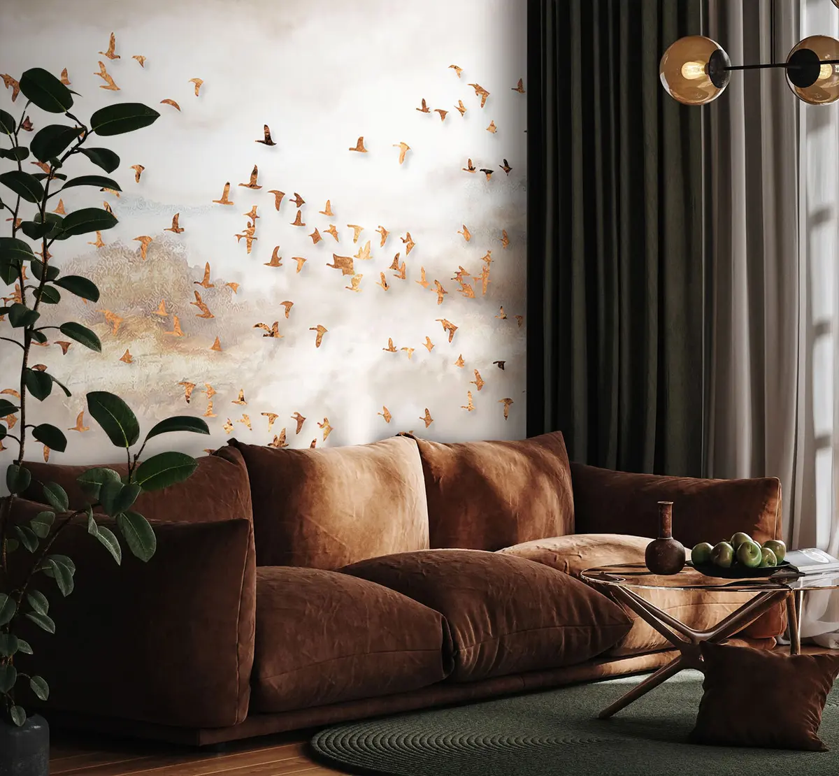Fotobehang Zwerm vogels in de bergen N° u93537