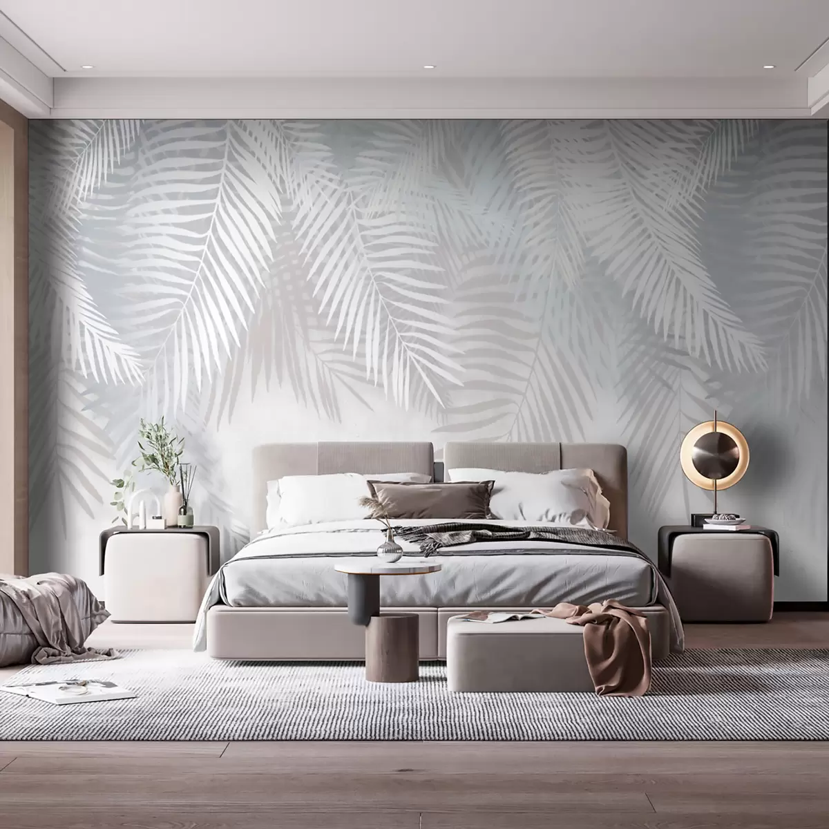 Fotobehang Witte palmbladen op grungetextuur N° u94457