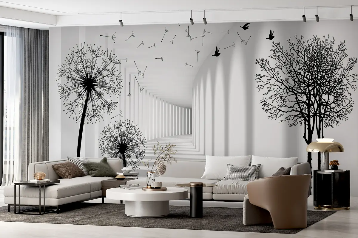 Fotobehang 3d tunnel en paardebloemen N° u37803