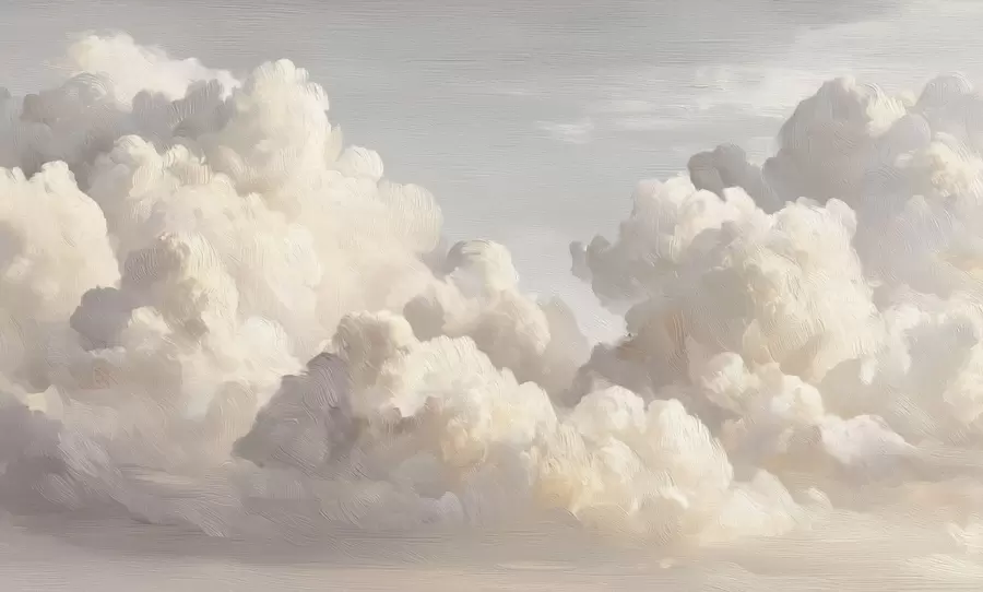 Muurschildering Romige wolken op een lichtbeige achtergrond