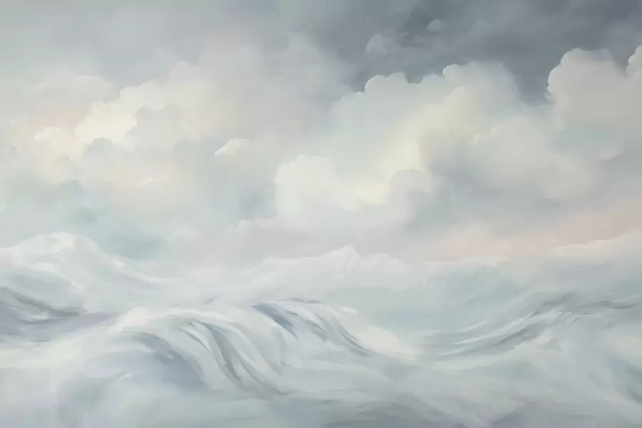 Muurschildering Dramatische wolken in zachte, gestructureerde penseelstreken