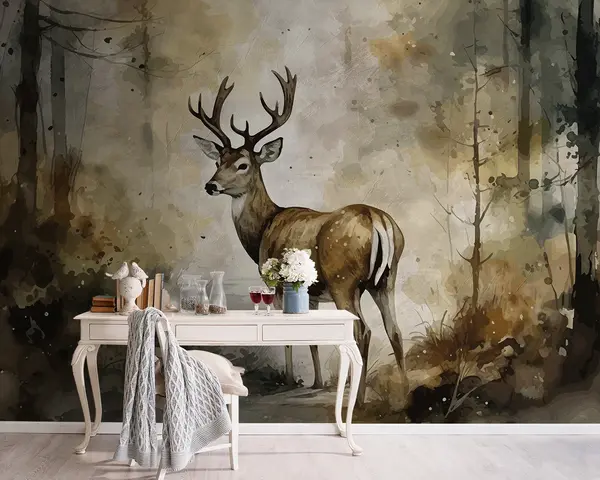 Fotobehang Handgetekend hert in het bos N° u95410