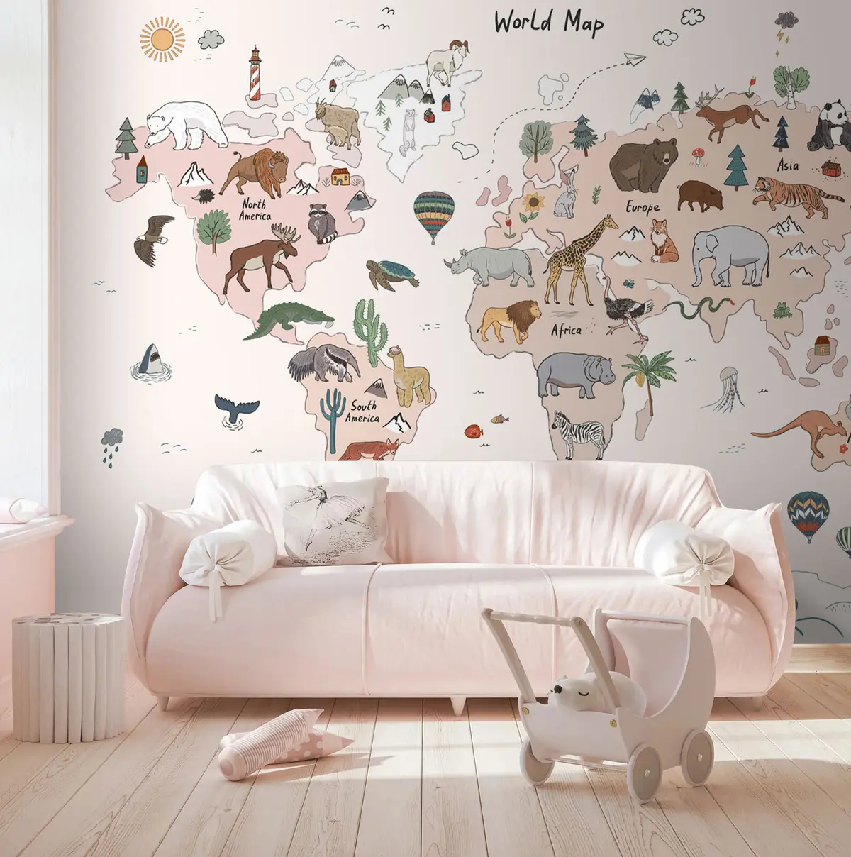 Fotobehang Wereldkaart voor kinderen met dieren N° u95028