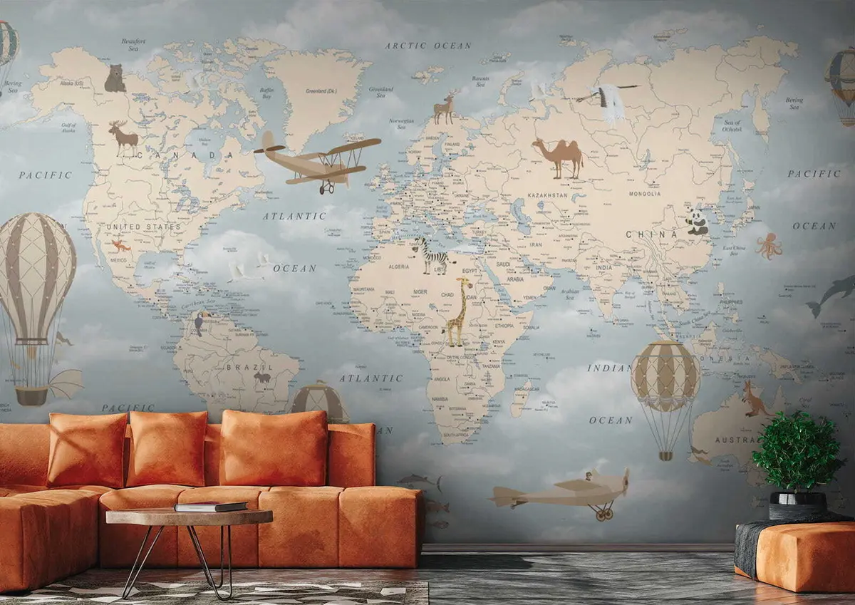 Fotobehang Wereldkaart voor kinderen met vliegtuigen N° u60135