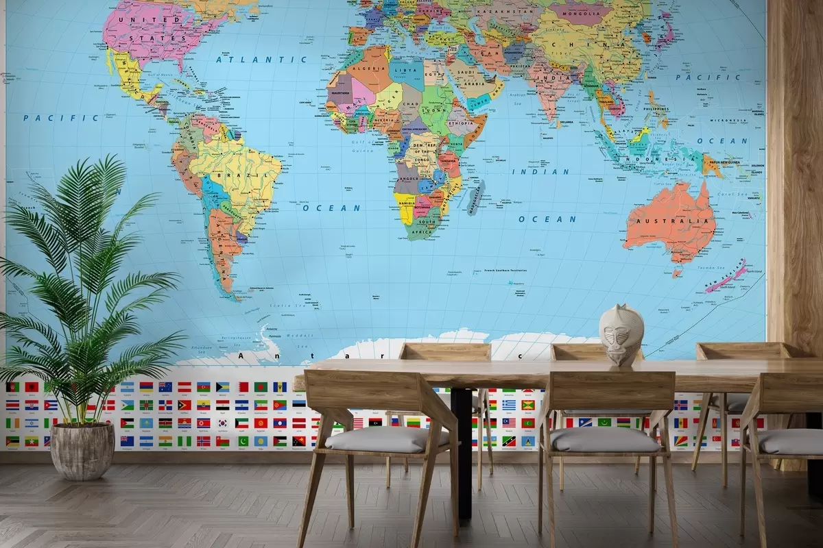 Fotobehang Wereldkaart met vlaggen van landen N° u60137
