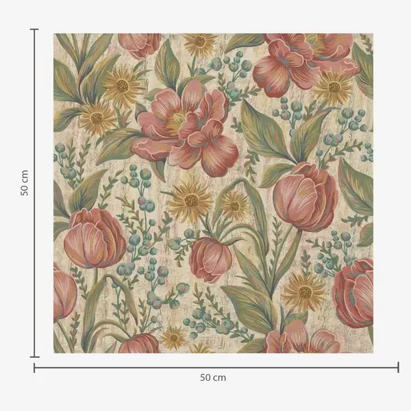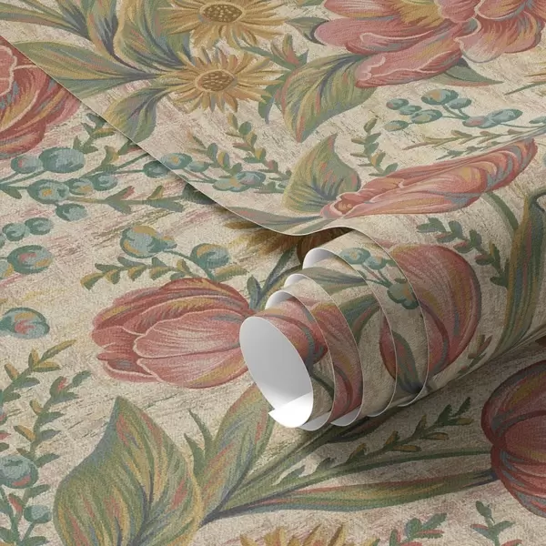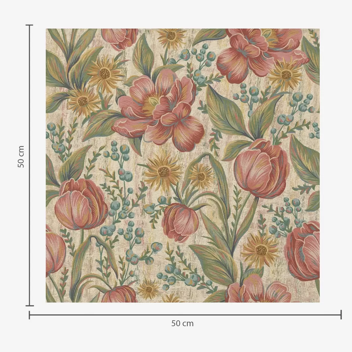 Behang Vintage tulpen en asters, crèmekleurige achtergrond met textuur Nr. a00773