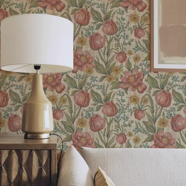Behang Vintage tulpen en asters, crèmekleurige achtergrond met textuur a00773