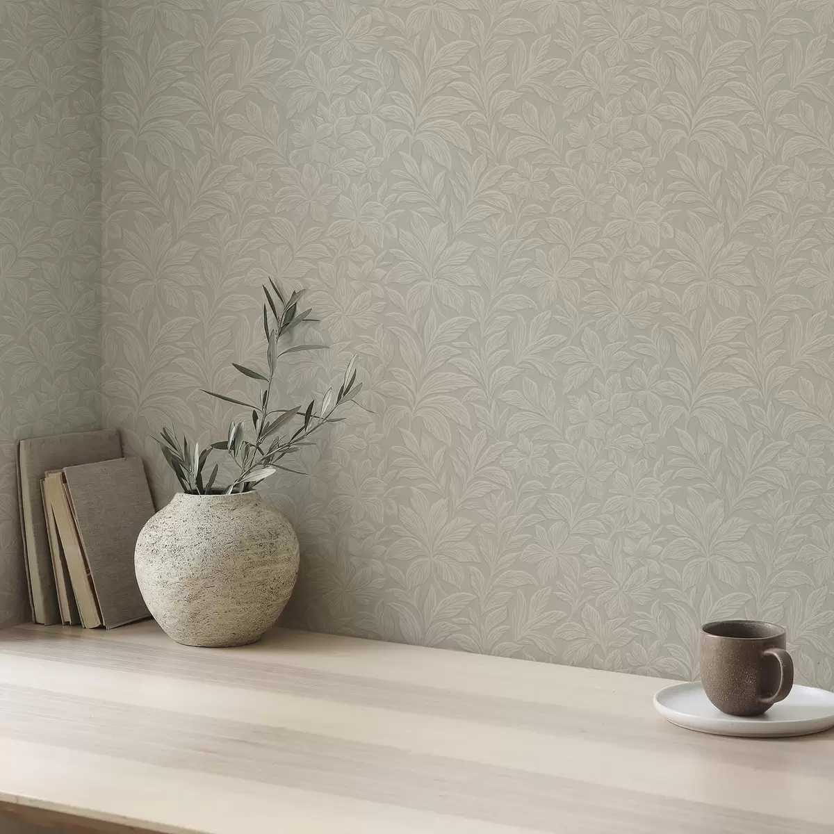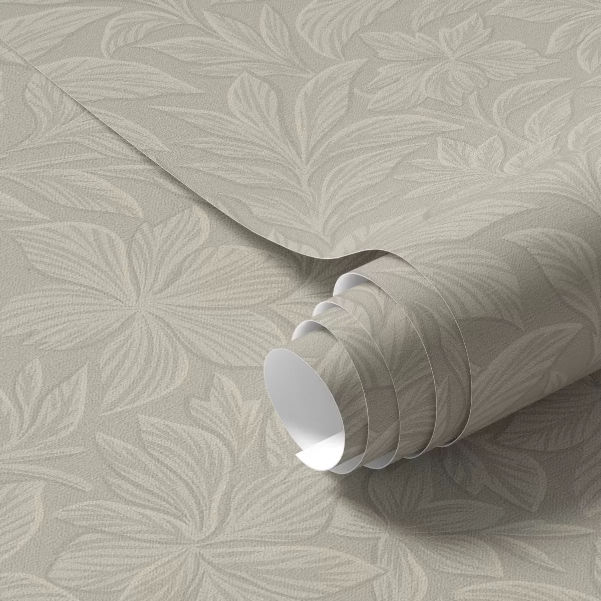 Behang Geprepareerde bladsilhouetten, warm taupe Nr. a00781