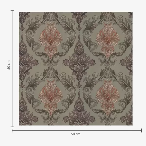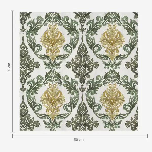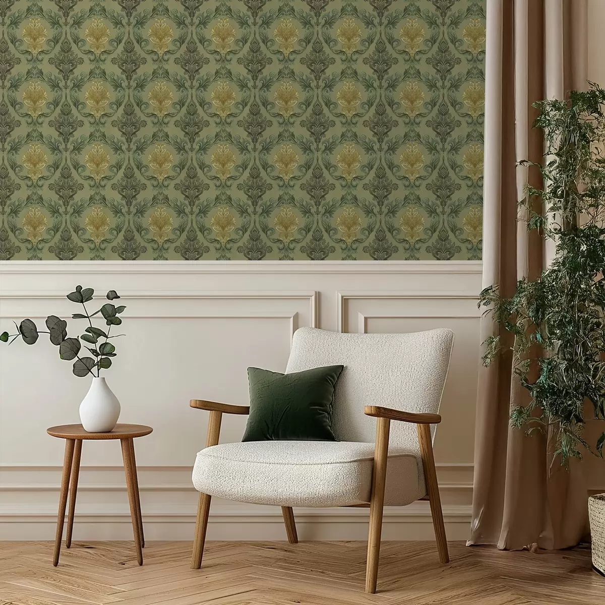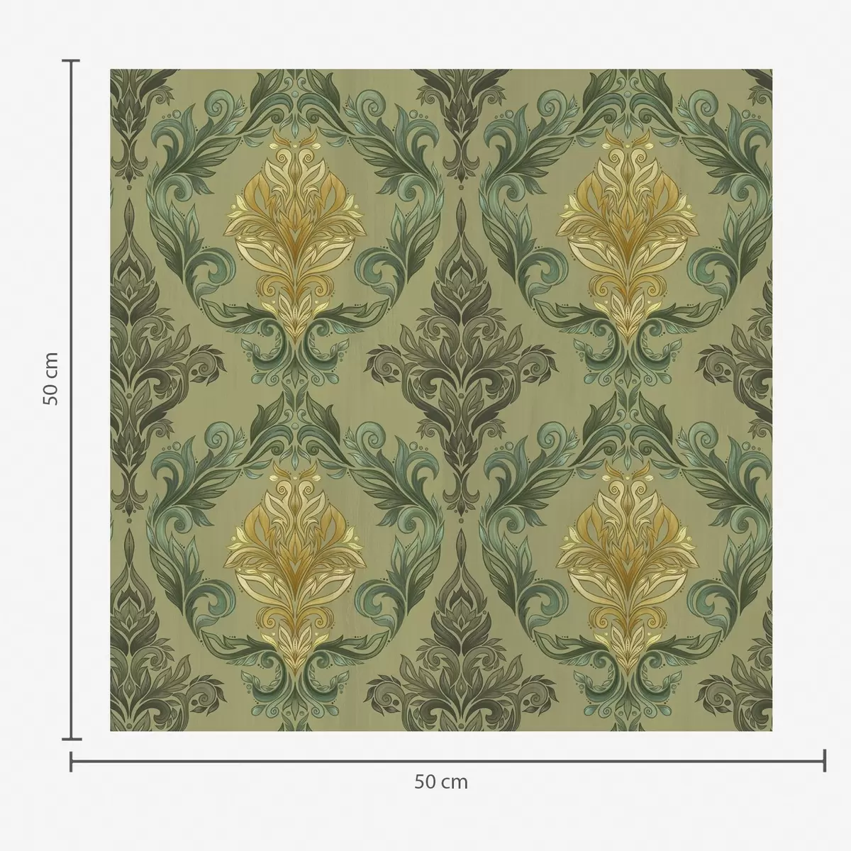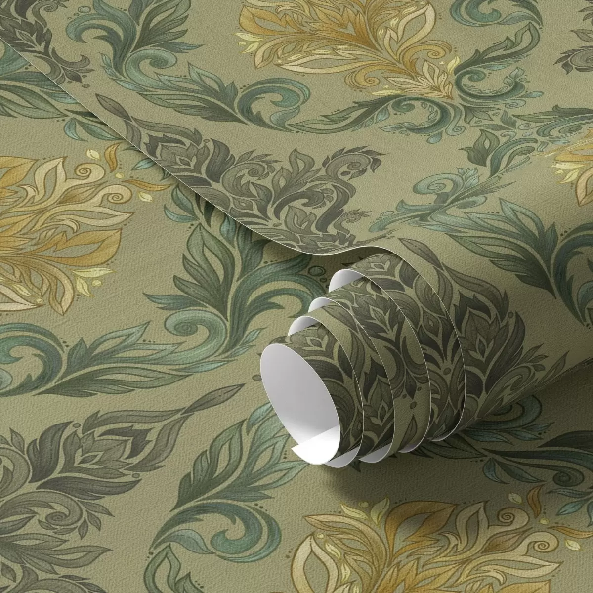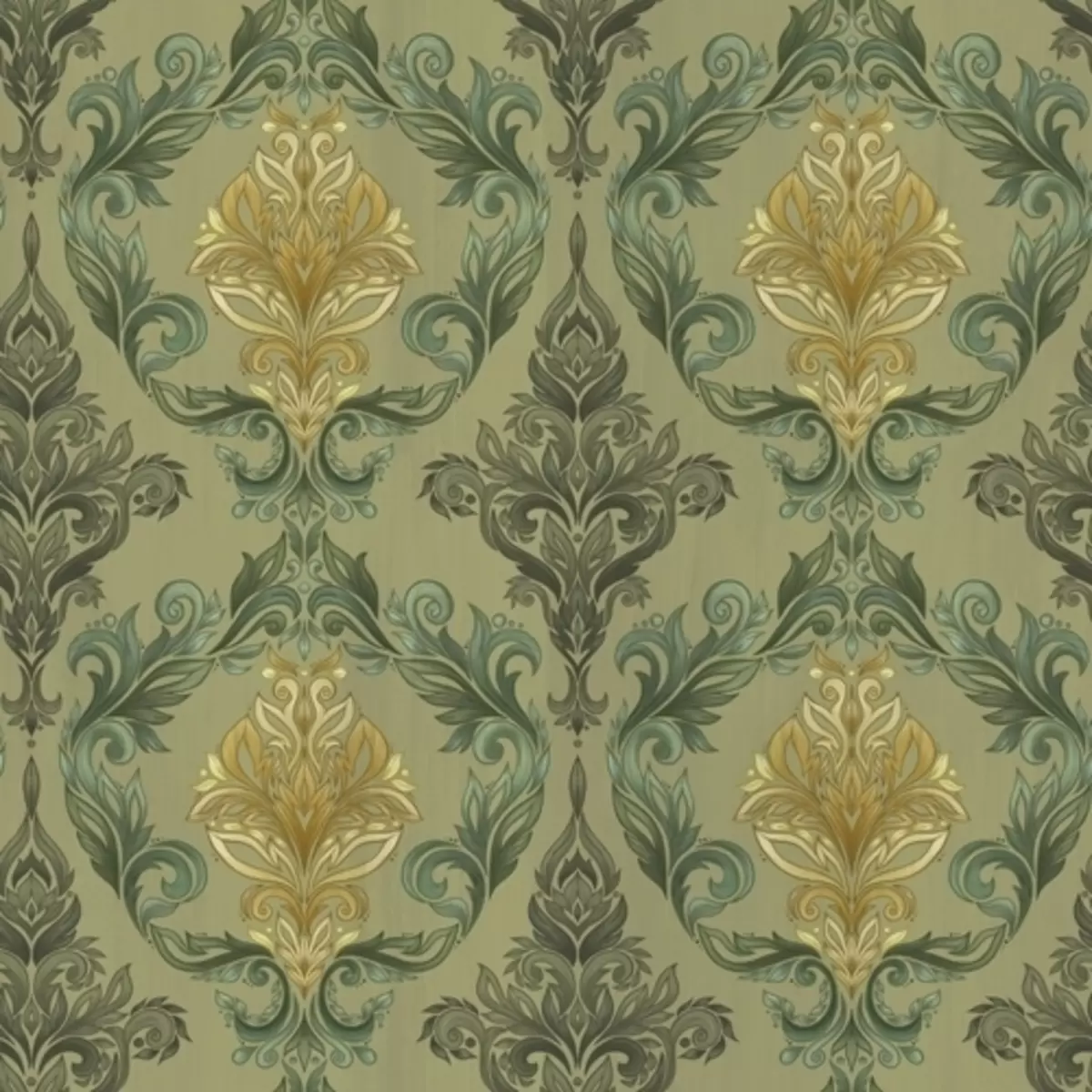 Fotobehang Damast met plantaardige krullen, olijf-oker kleurenpalet N° a00828