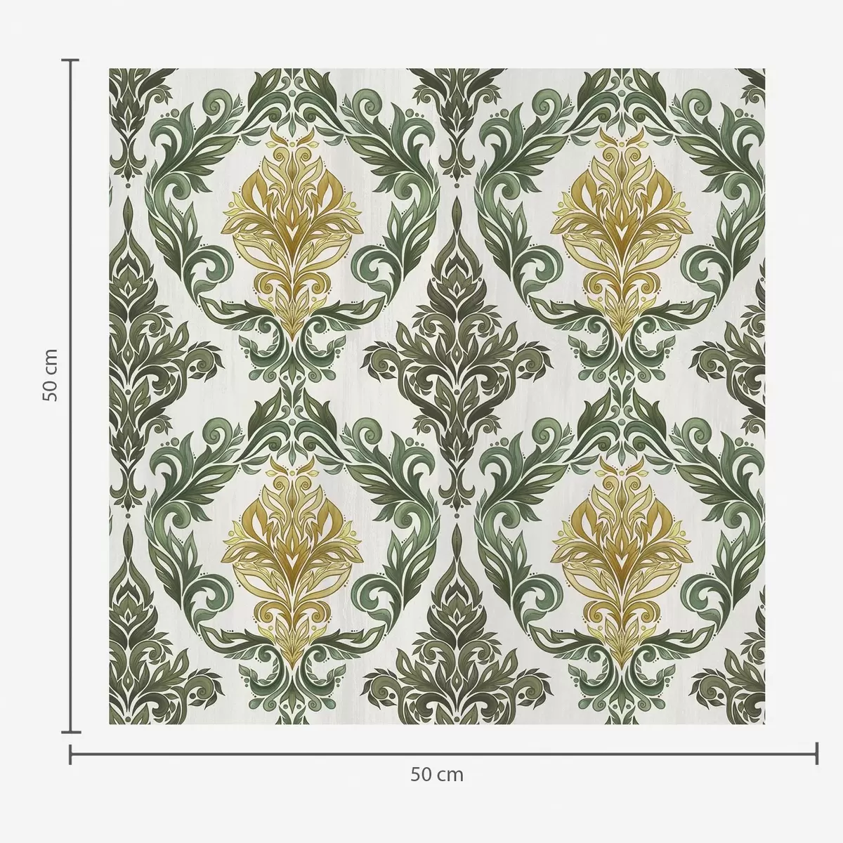 Behang Damast met groene krullen op een lichte achtergrond Nr. a00828v1