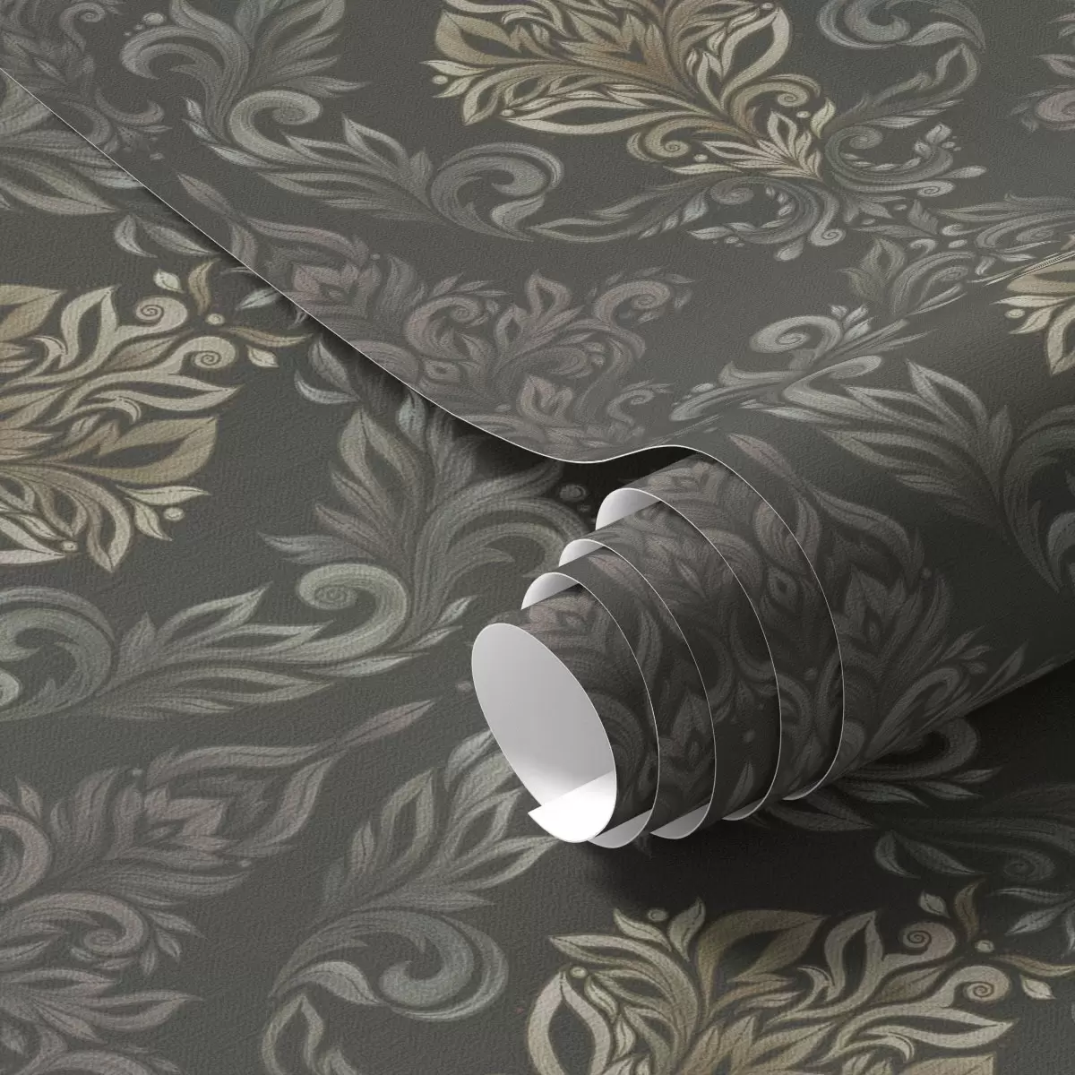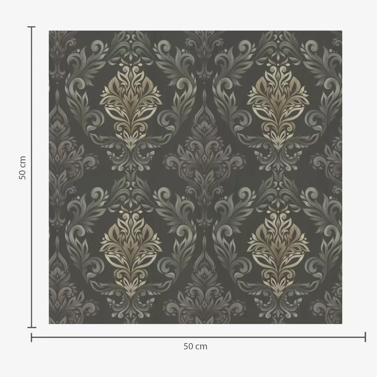Behang Damast op donkere grafietgrond, olijf-oker accenten Nr. a00828v5