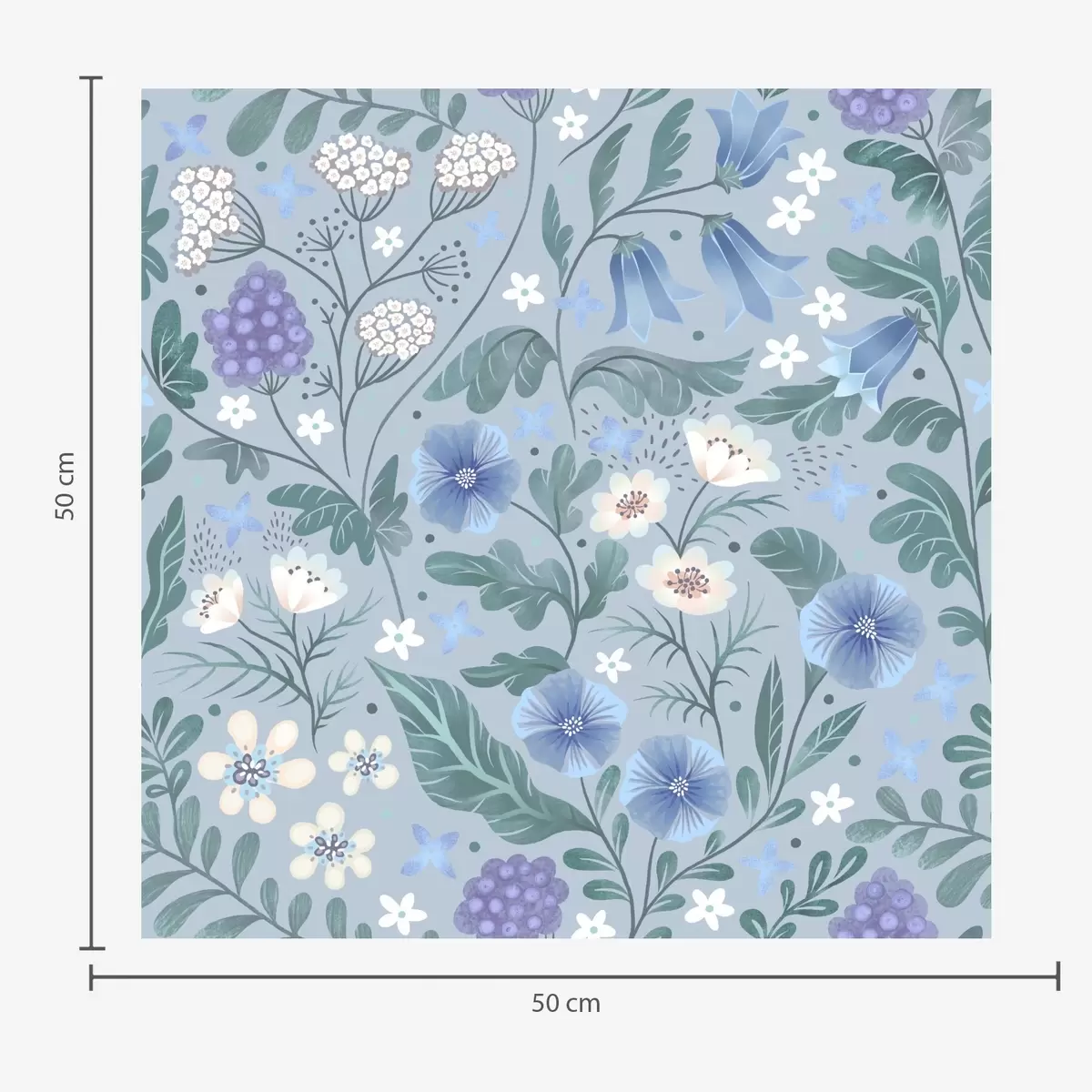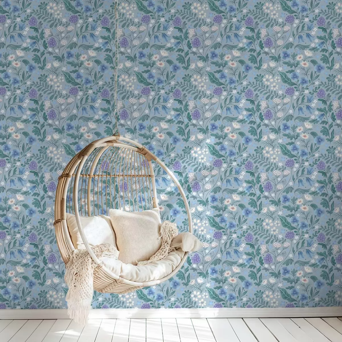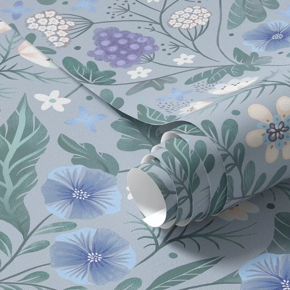 Behang Wilde bloemen en bessen op grijsblauwe achtergrond Nr. a00849v1