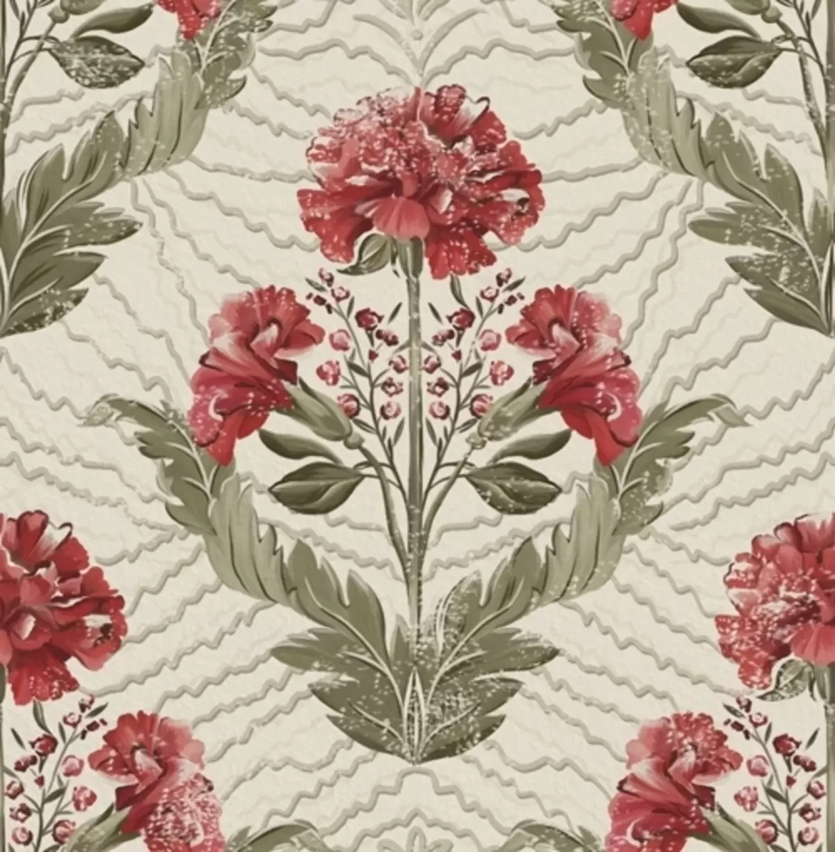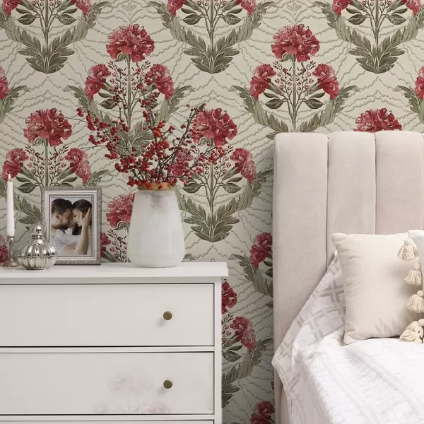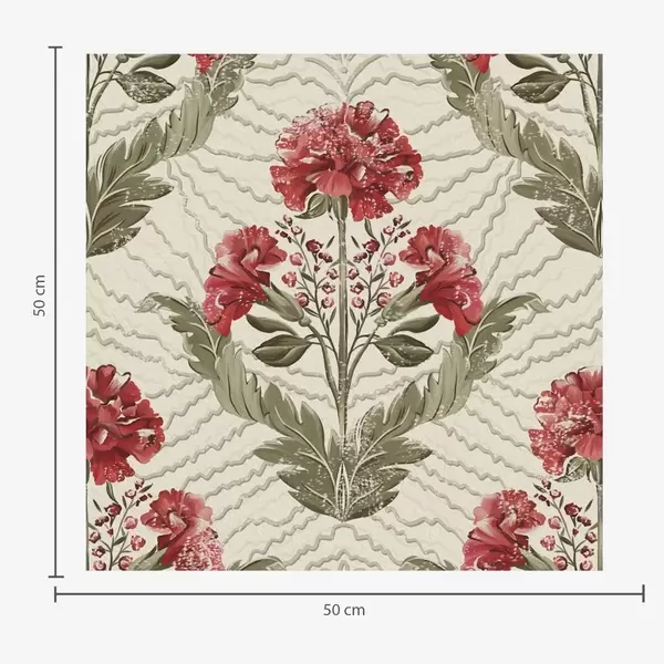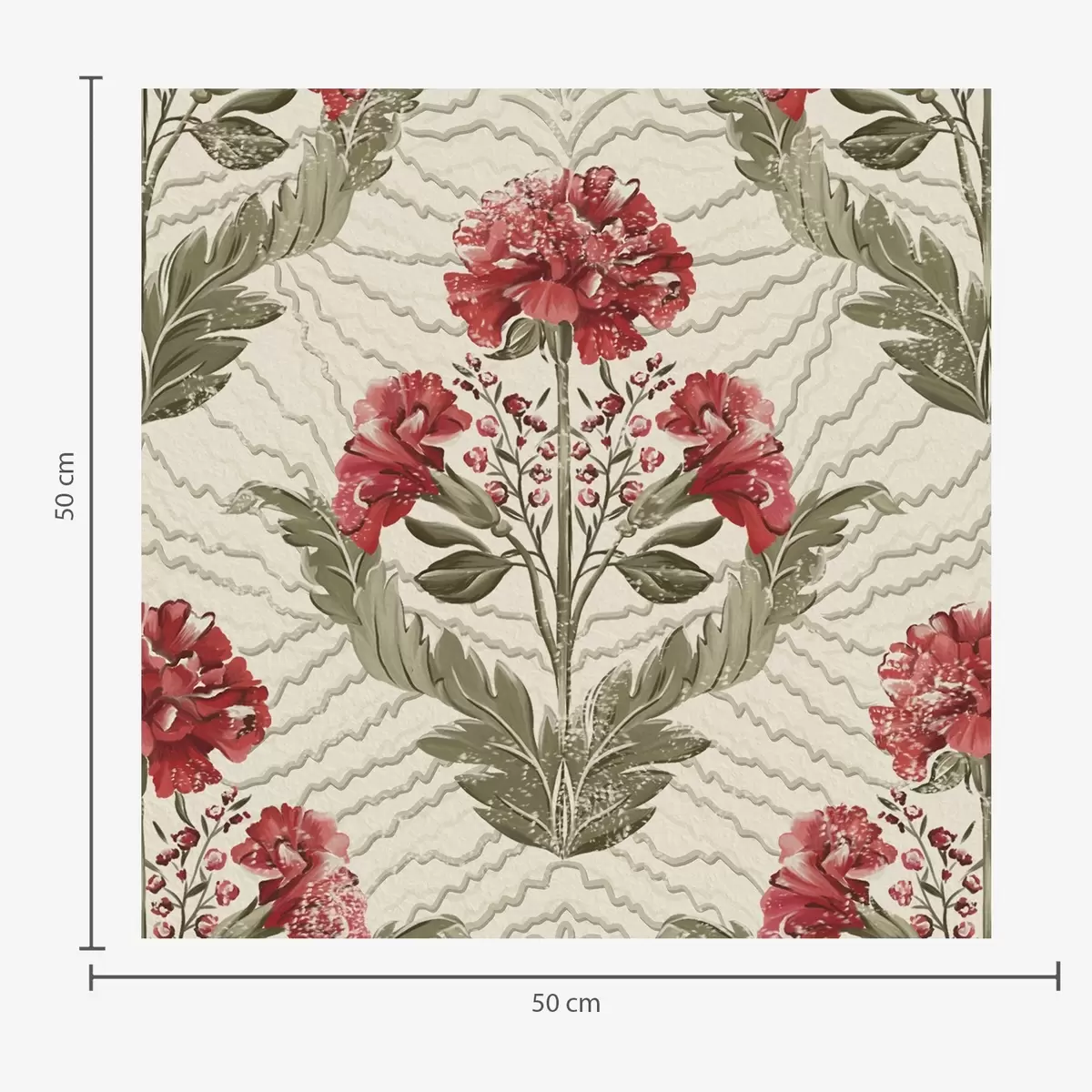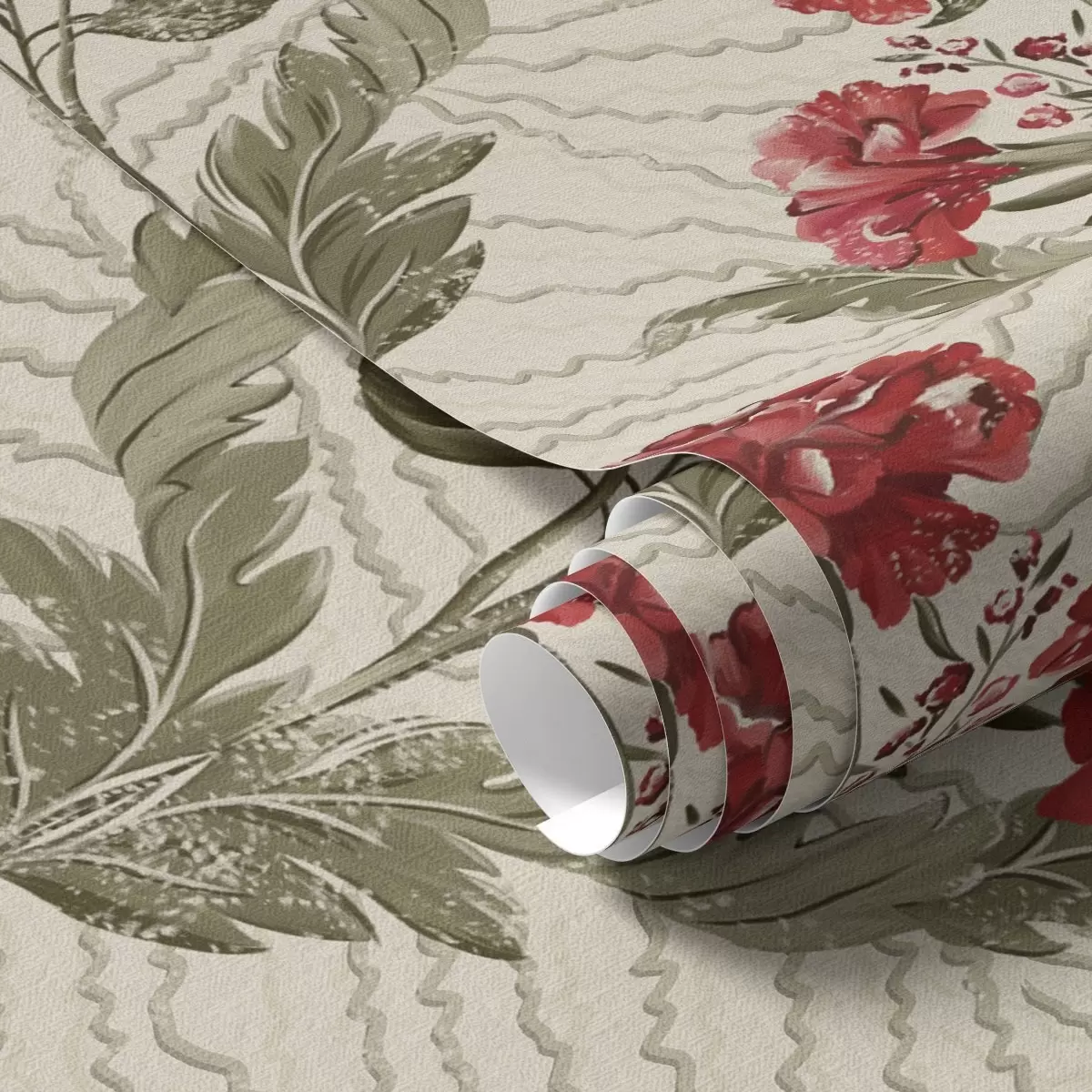 Fotobehang Grote rode pioenrozen met grafische achtergrond, crèmekleurige achtergrond N° a00857
