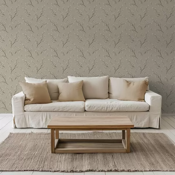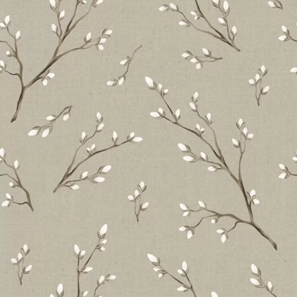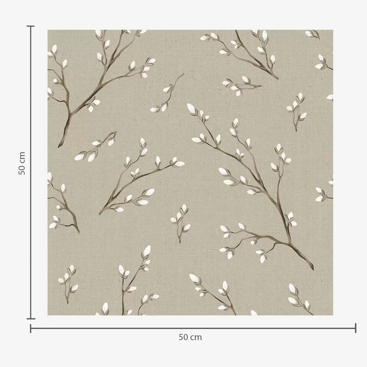 Fotobehang Twijgen met witte knoppen op een taupe linnen achtergrond N° a00861