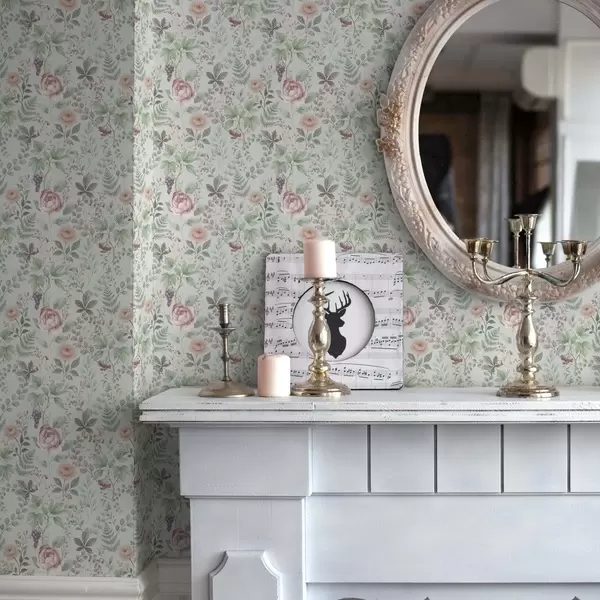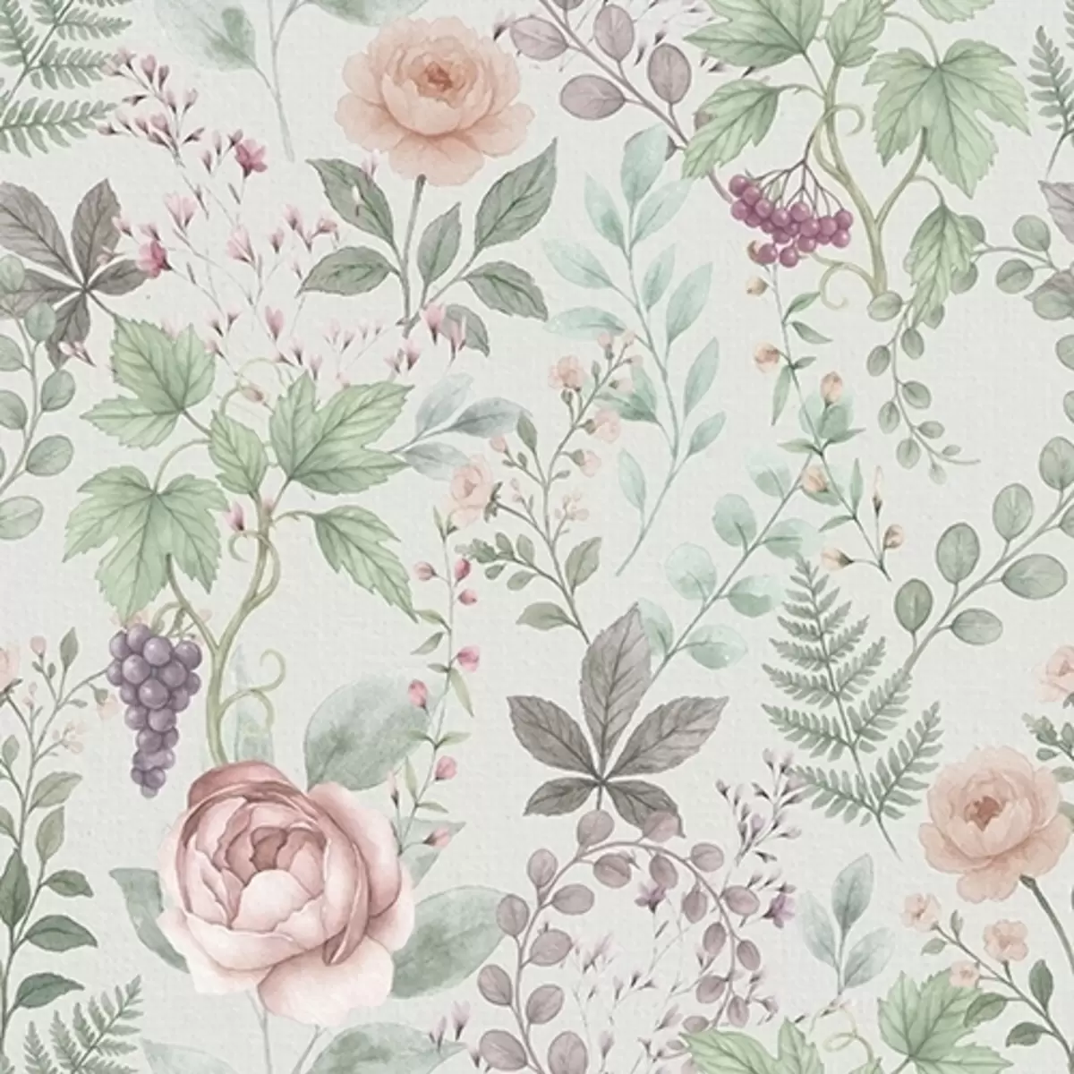 Fotobehang Pastelkleurige tuin met rozen, varens en druiven N° a00867
