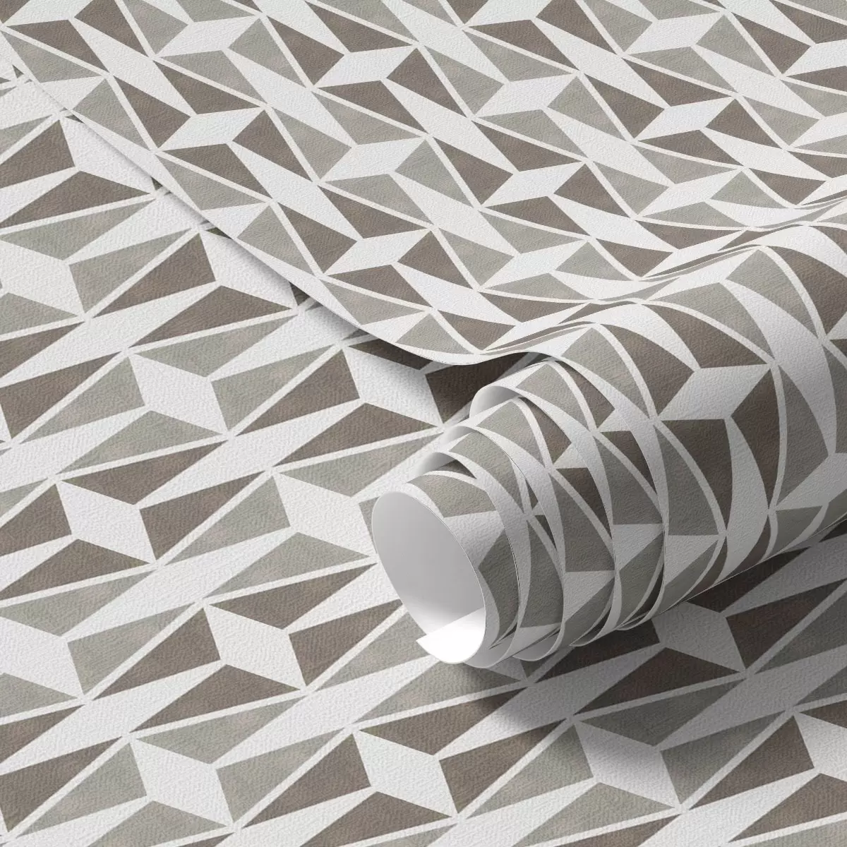 Fotobehang Taupe en witte diamantpatronen, mid-century gevoel N° a00905