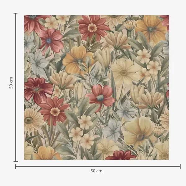 Fotobehang Vintage weide bloeit in warme gele, rode en salie tinten N° a00906