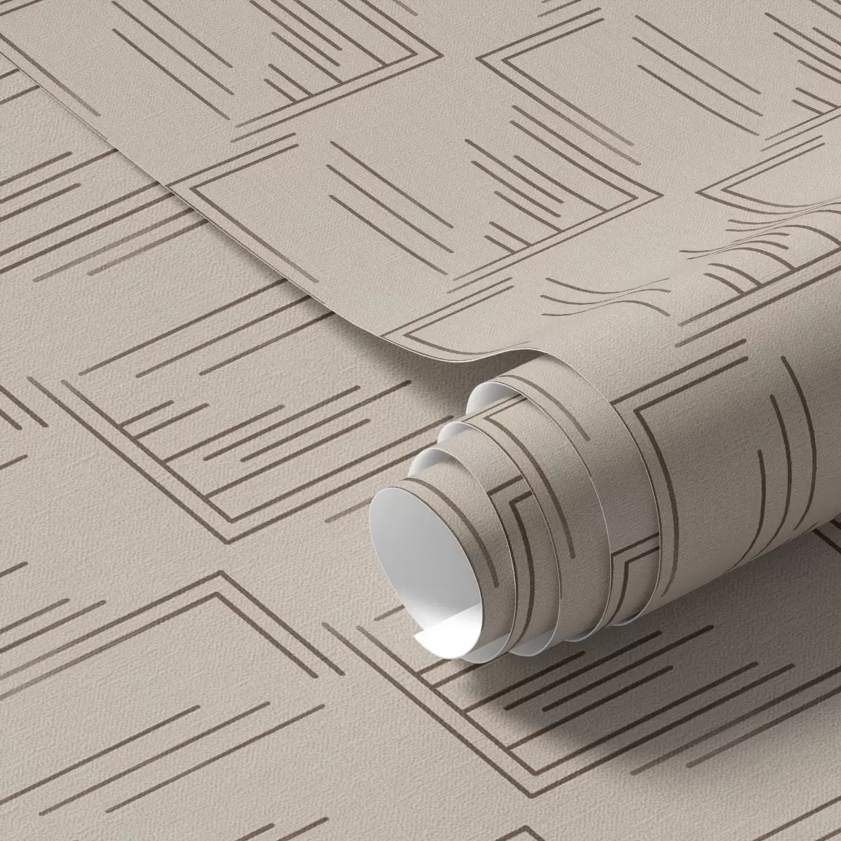 Fotobehang Cacao-lijnwerk hoekvierkanten op warm beige N° a00910