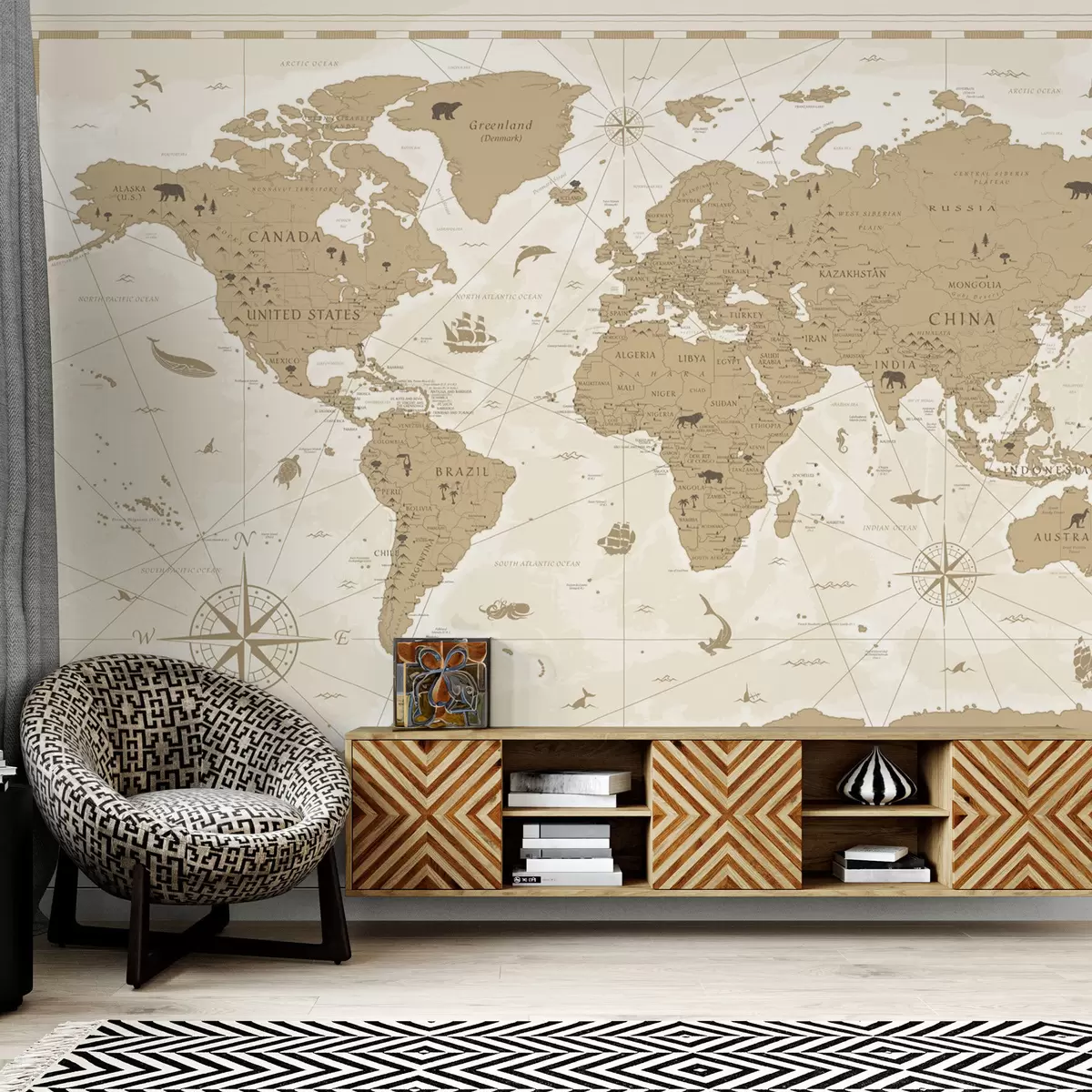 Fotobehang Vintage wereldkaart N° u99074