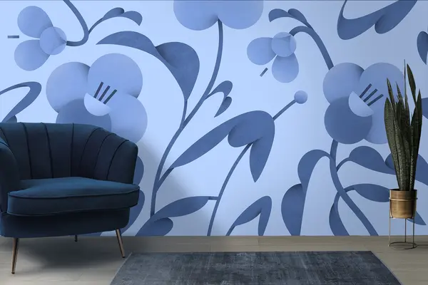 Fotobehang Botanische print met decoratieve bloemen in blauw N° u99196v8