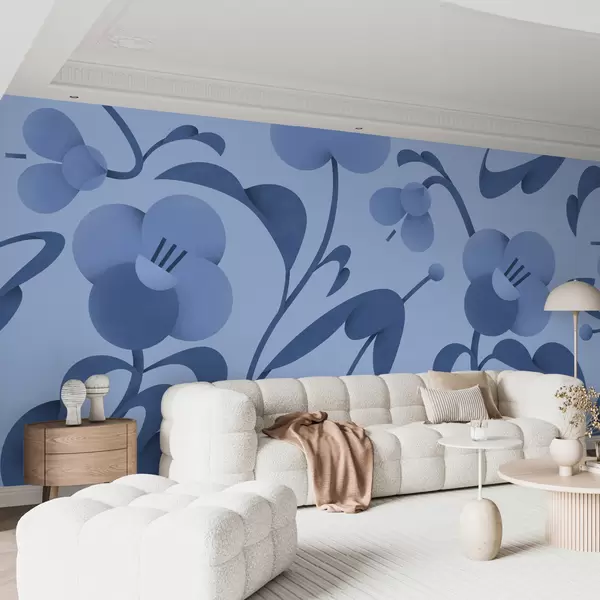 Fotobehang Botanische print met decoratieve bloemen in blauw N° u99196v8