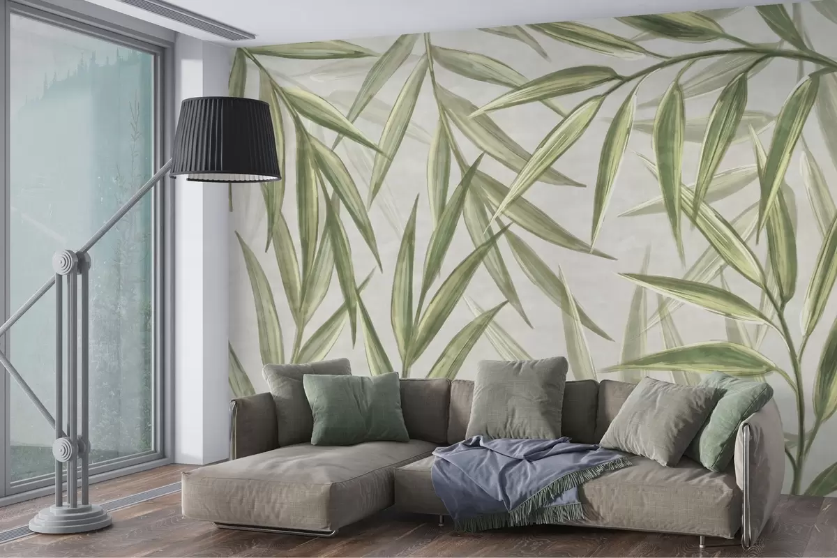 Fotobehang Weelderige bladeren in zachte aquareltinten N° w00236