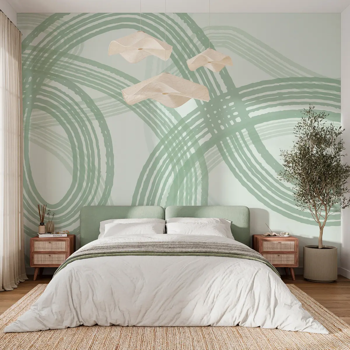 Fotobehang Abstracte lijnen boho stijl groene kleur N° w00417v2