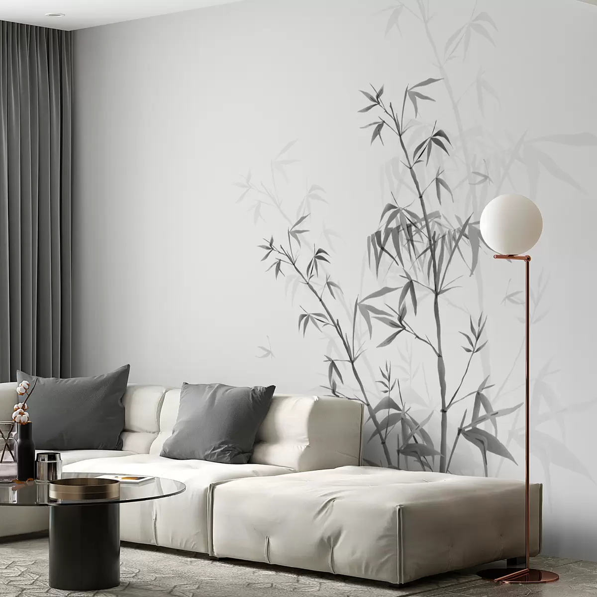 Fotobehang Minimalistische stijl Japandi plant bamboe Chinoiserie grijze kleur N° w00546v1