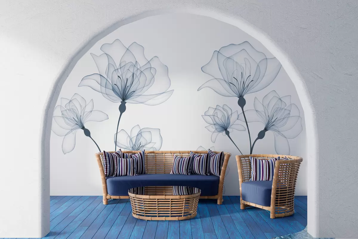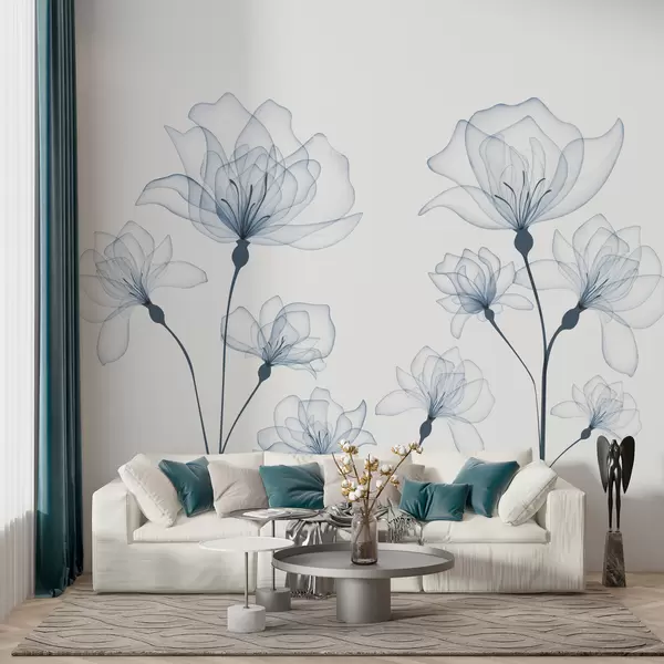 Fotobehang Fijne blauwe aquarelbloemen N° w00744v1