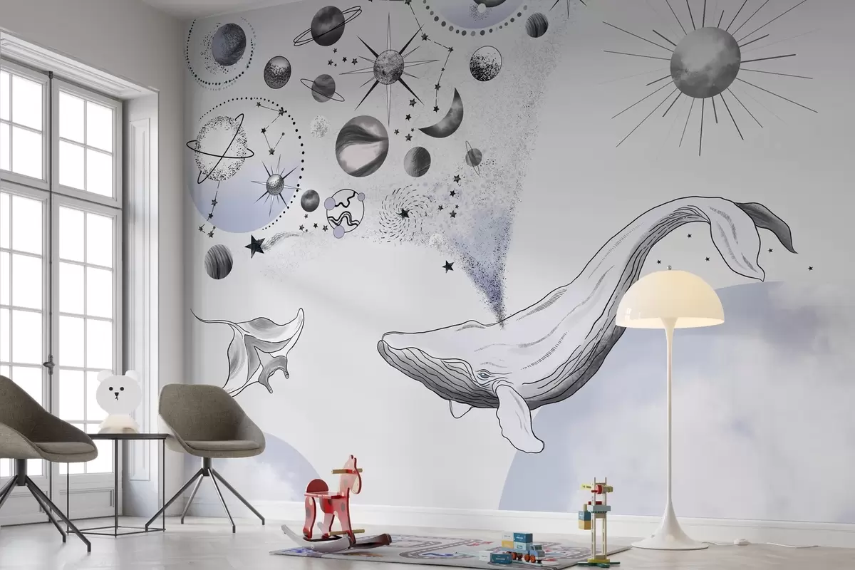 Fotobehang Walvis zweeft door kosmische wonderen N° w00868