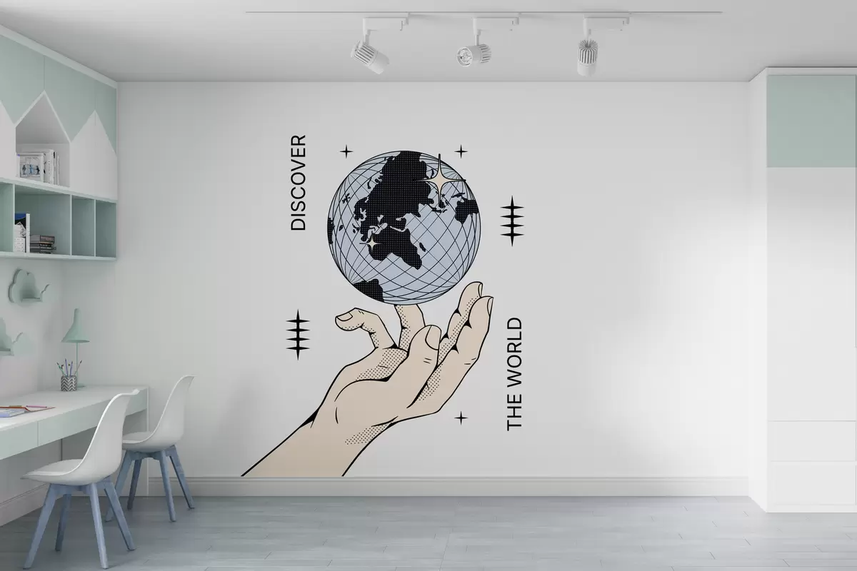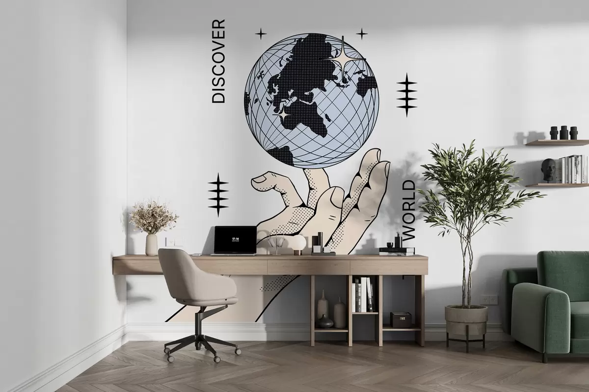Fotobehang Beige handdraaiende wereldbol op een witte achtergrond voor kamer- of kantoordecoratie N° w00984