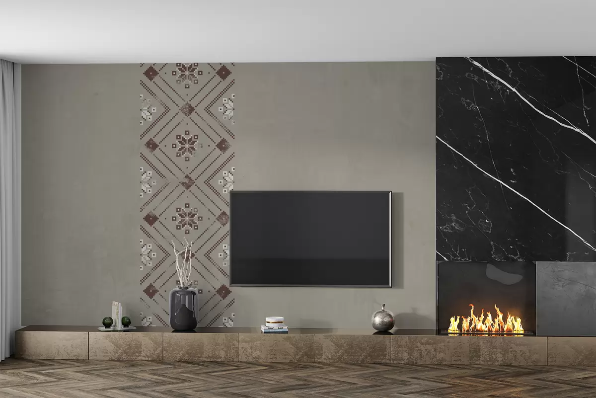 Fotobehang Patriottisch behang met minimalistische Oekraïense ornamenten in bruine tinten N° w01027v1